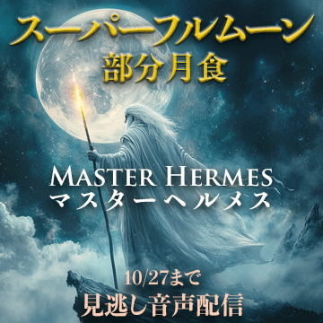 お待たせしました! 9月18日スーパーフルムーン部分月食に開催したマスターヘルメスの会の見逃し音声配信を公開します。瞑想、メッセージ、エネルギー伝達、質疑応答、雑談。3時間近い内容です。